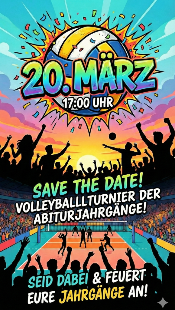 Der diesjährige Abiturjahrgang 2026 lädt zum großen Volleyballturnier in die Sporthalle ein.