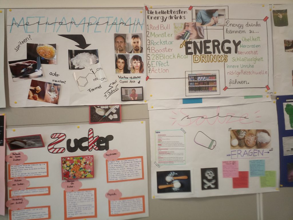 Parallel hierzu fanden auch Informationsveranstaltungen z.B. durch den Drogenpräventionsbeauftragten Christoph Eichmann der Polizei Koblenz statt (https://www.polizei-beratung.de/themen-und-tipps/drogen/). Dieser informierte über Rechtliches zum Thema Drogen und gab Einblicke in Polizeieinsätze mit Schwerpunkt Drogenkriminalität. Der Ethikkurs der Jahrgangsstufe 9 war sehr interessiert und erfuhr so über die eigenen Recherchen hinaus welche verheerende Folgen Drogen haben können.